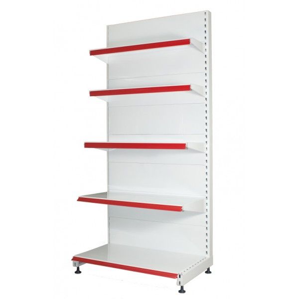 Стеллаж с полками и красными ценникодержателями