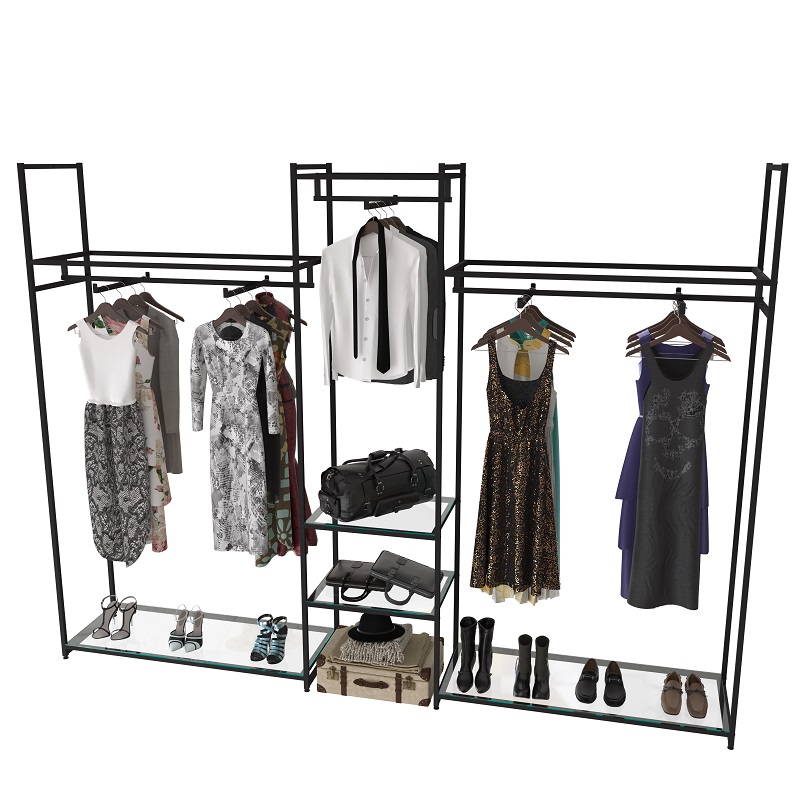 Стеллаж для магазина со стеклянной полкой KC2206(черн)