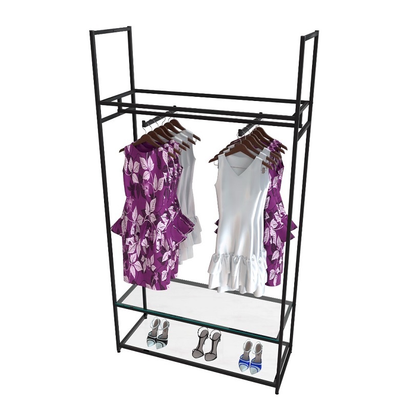 Стеллаж для магазина с полкой из стекла AС22120-06(черн)