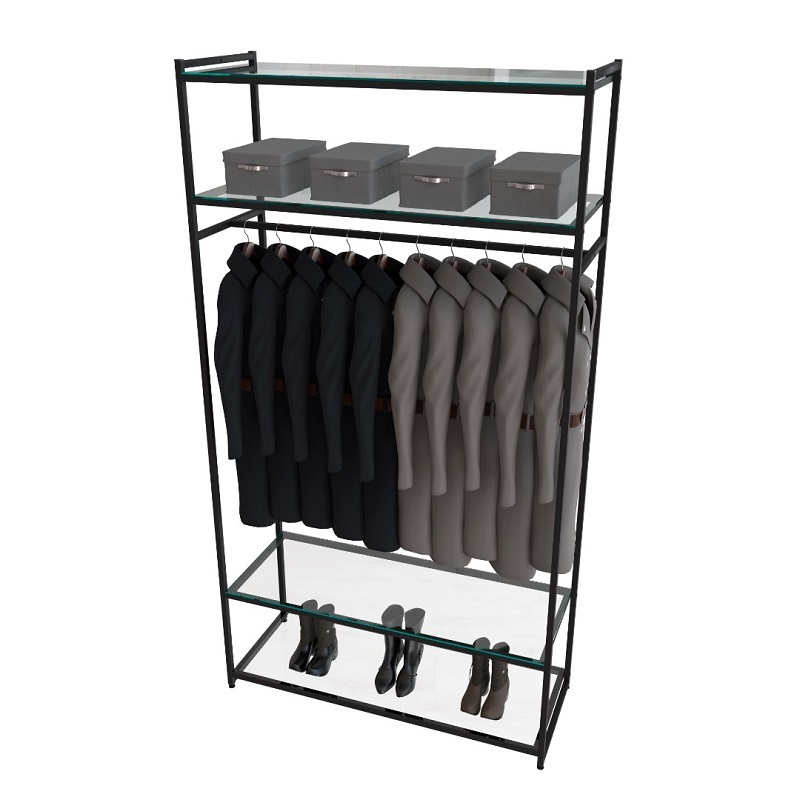 Стеллаж для магазина с полкой из стекла AС22120-15(черн)